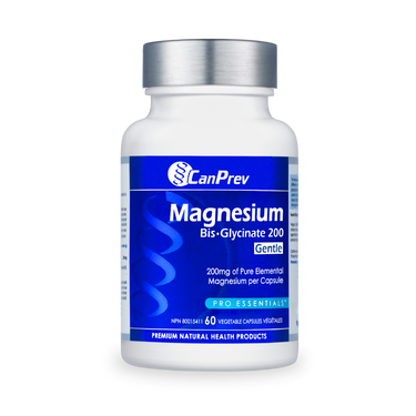 CanPrev’s Magnesium Bis·Glycinate 200 Gentle contains as much as 20% more elemental magnesium than other magnesium supplements. It works to restore magnesium to optimum levels and help fuel all the important functions it’s called on to perform. Magnesium Bis-Glycinate 200 Gentle offers a potent, therapeutic dose of 200mg of pure elemental magnesium in a form known for its superior absorption and gentleness on the bowels – all in easy to swallow vegetable capsule or powder with no fillers.