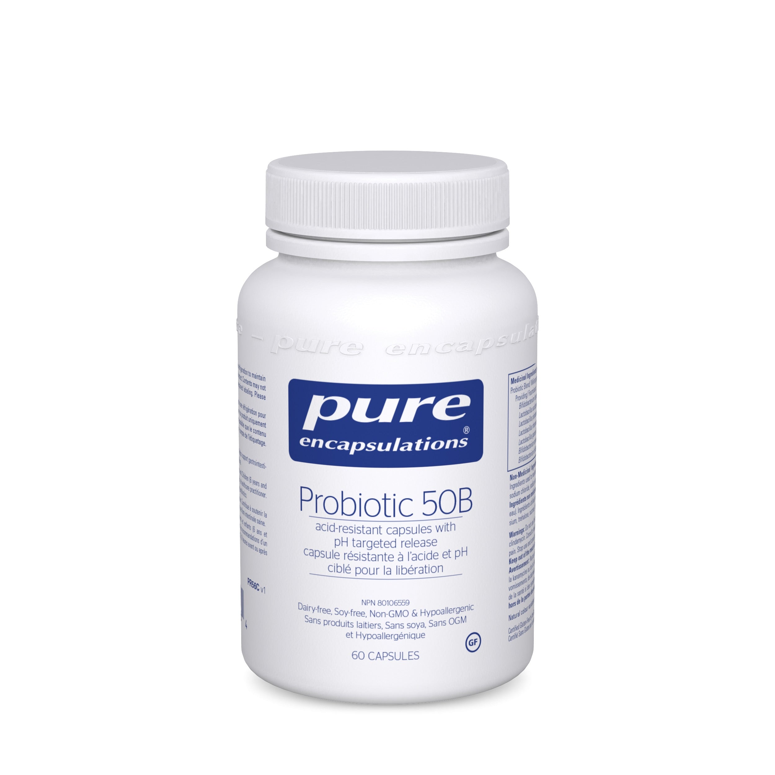 Probiotic 50B provides 50 billion CFU per capsule of the beneficial bacteria Lactobacillus acidophilus, Lactobacillus rhamnosus, Lactobacillus plantarum, Lactobacillus gasseri, Bifidobacterium longum subsp. longum, Bifidobacterium bifidum, and Bifidobacterium animalis subsp. lactis. This formula is offered in acid-resistant capsules with pH-targeted release for maximal probiotic viability. These capsules are designed to resist disintegration in an acidic environment (i.e., stomach) and dissolve in more alkaline environments (i.e., small and large intestine). This technology shields the organisms from stomach acid, delivering the maximal viable organisms to the G.I. tract. This blend of lactobacilli and bifidobacteria is designed to promote healthy intestinal ecology to enhance gastrointestinal health. Probiotics have been shown to maintain healthy G.I. barrier function, in part by maintaining intestinal epithelial integrity. Several trials have also revealed that mixed probiotic supplementation assists in maintaining intestinal flora and promoting G.I. comfort.