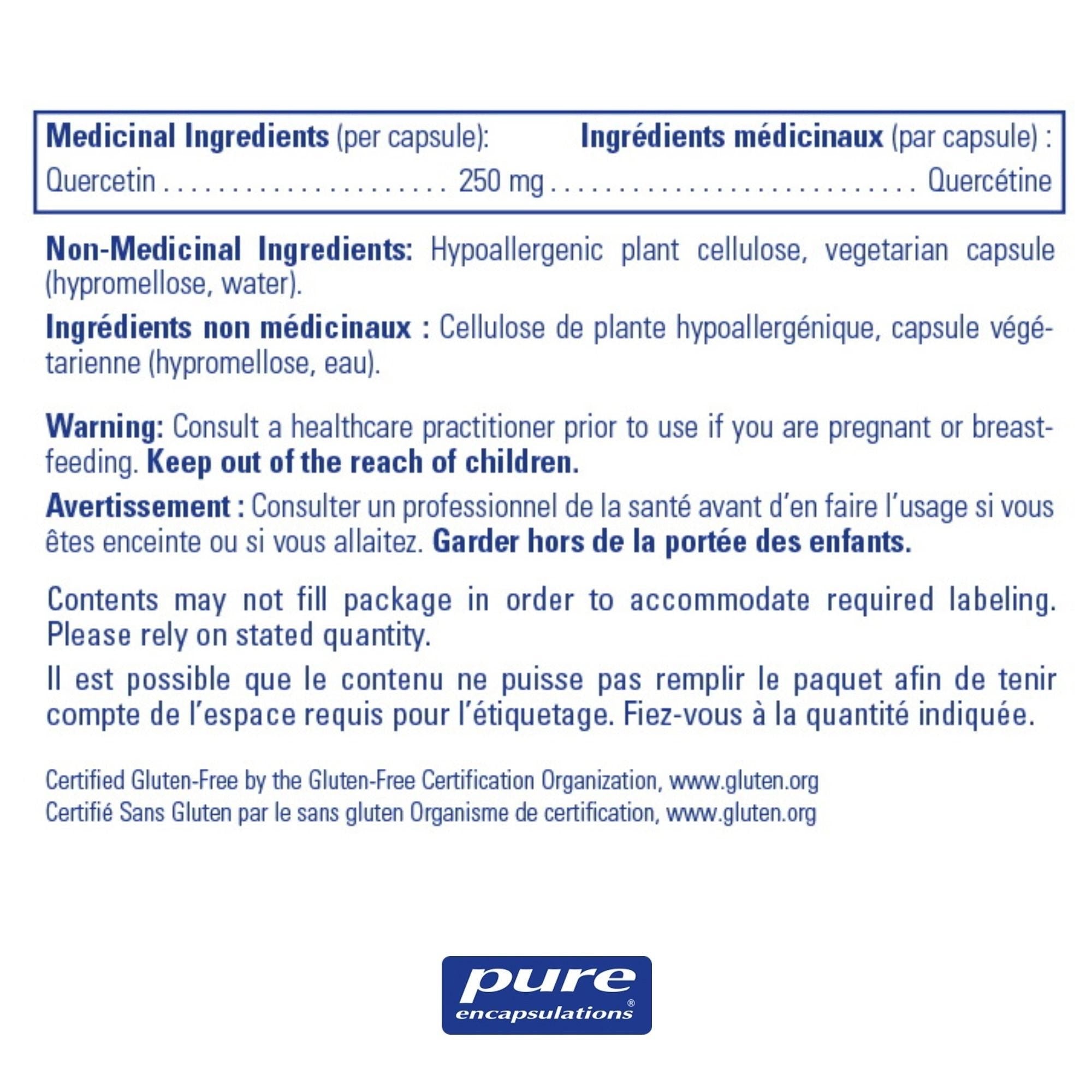 Pure Encapsulations Quercetin is formulated as a source of antioxidants. Quercetin is traditionally used in Herbal Medicine as a capillary and blood vessel defender.