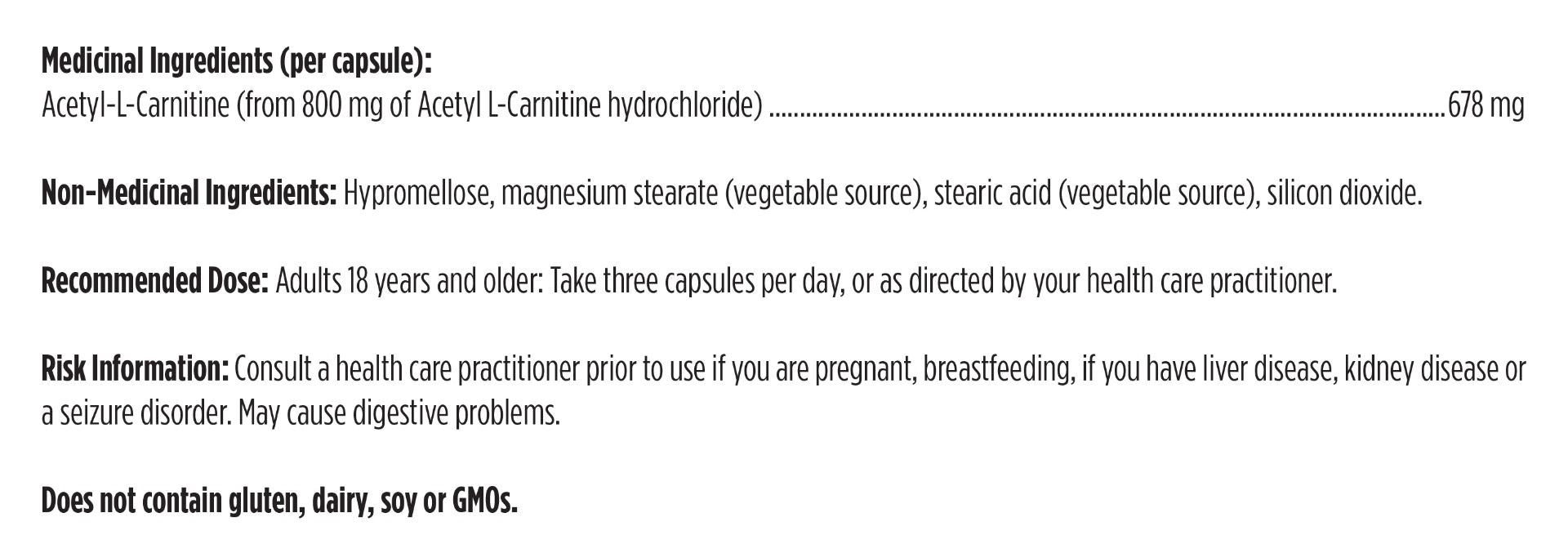 | Acetyl-L-Carnitine (from 800 mg of Acetyl L-Carnitine hydrochloride) | 678 mg |