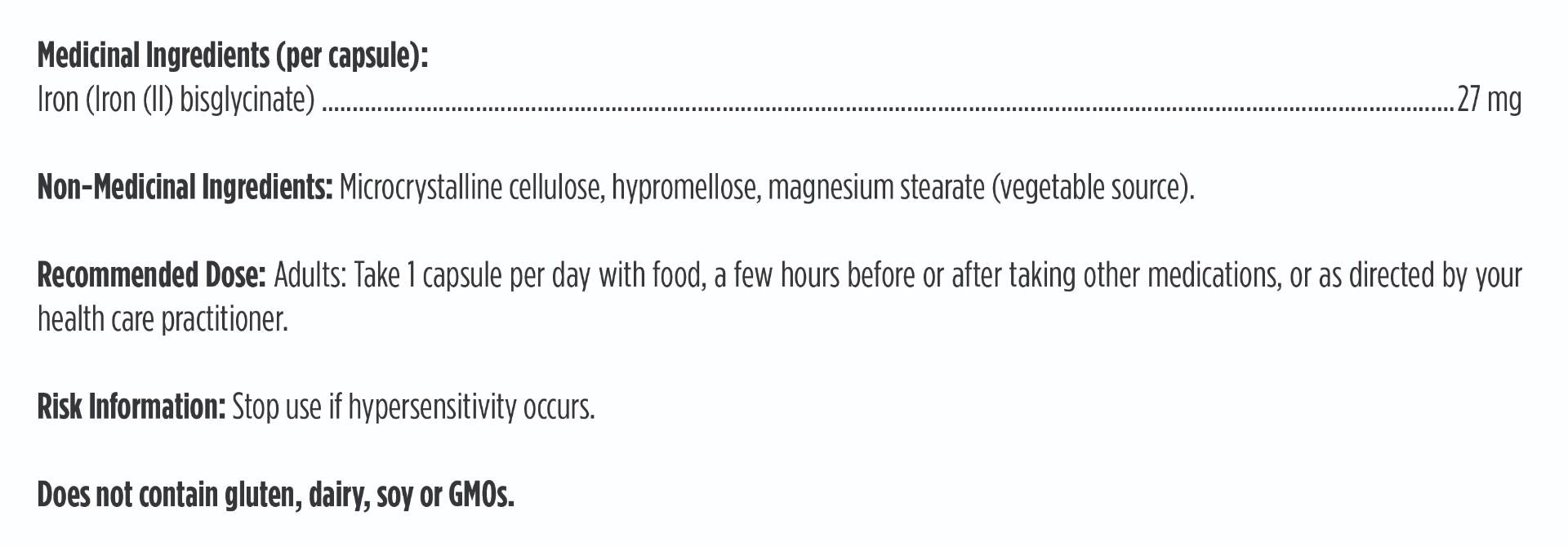 | Iron (Iron (II) bisglycinate) | 27 mg |