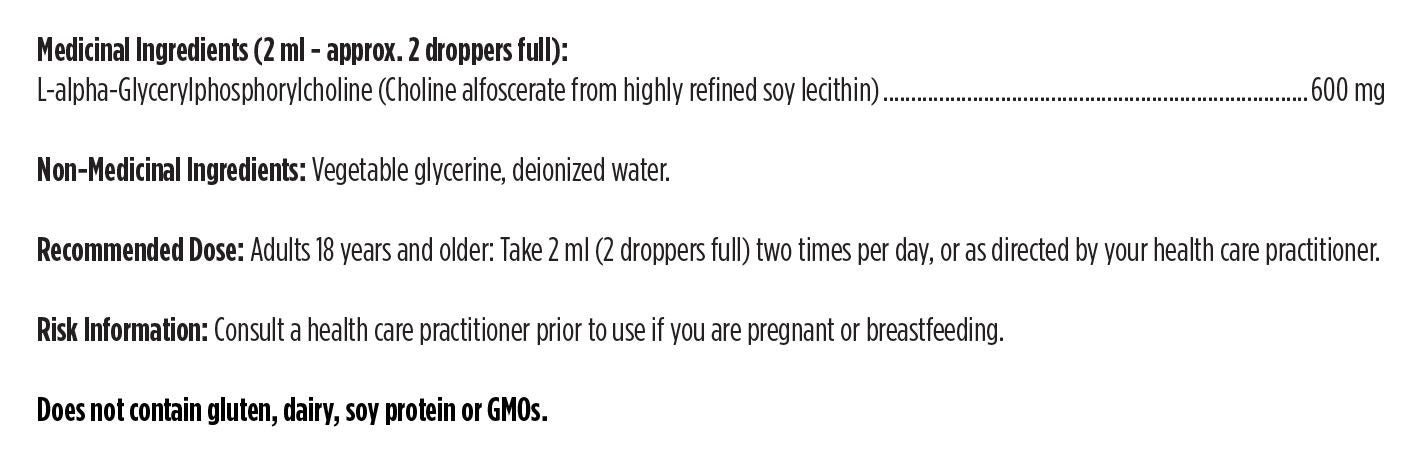 | Glycerophosphocholine (Choline alfoscerate from sunflower lecithin) | 600 mg |