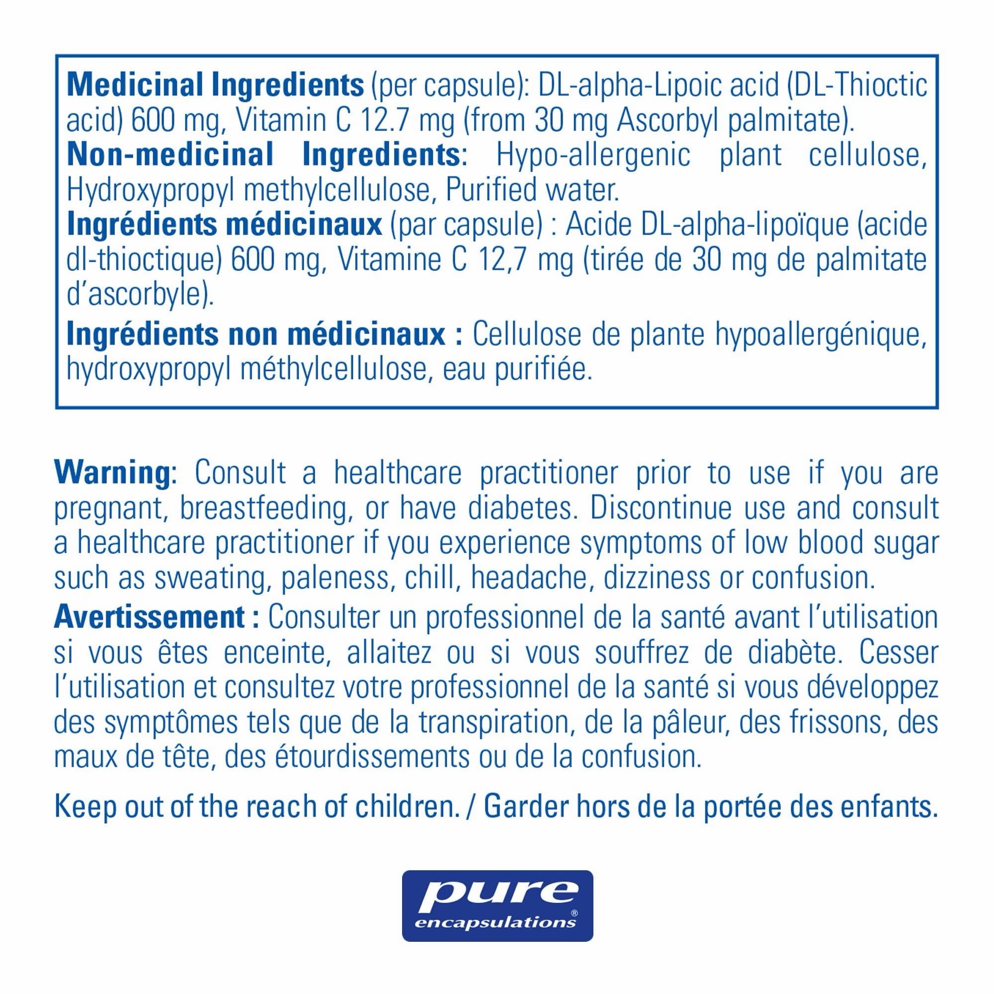 Pure Encapsulations Alpha Lipoic Acid 600mg 60 Veggie Caps