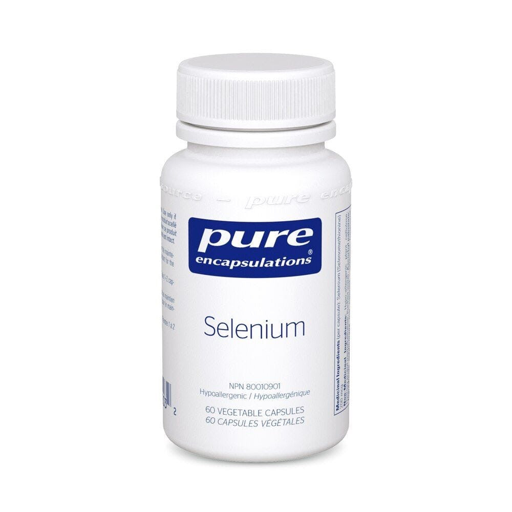 Selenium safeguards normal cell function by scavenging harmful free radicals. It is a natural antioxidant that decreases oxidative damage and delays the oxidation of polyunsaturated fatty acids as a component of selenoprotein P and selenoenzymes, such as glutathione peroxidase. The highest levels of selenium are present in the thyroid gland, where it removes reactive oxygen species produced during the synthesis of thyroid hormones. It also plays a direct role in thyroid hormone synthesis. Additionally, selenium shields immune cells from the over-production of reactive oxygen species that can occur during normal immune responses. Pure Encapsulation’s Selenium provides selenomethionine, a bioavailable form of selenium.